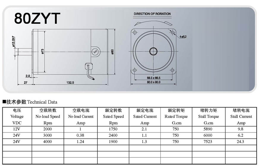 產(chǎn)品型號:70ZYT,80ZYT直流電機(jī)